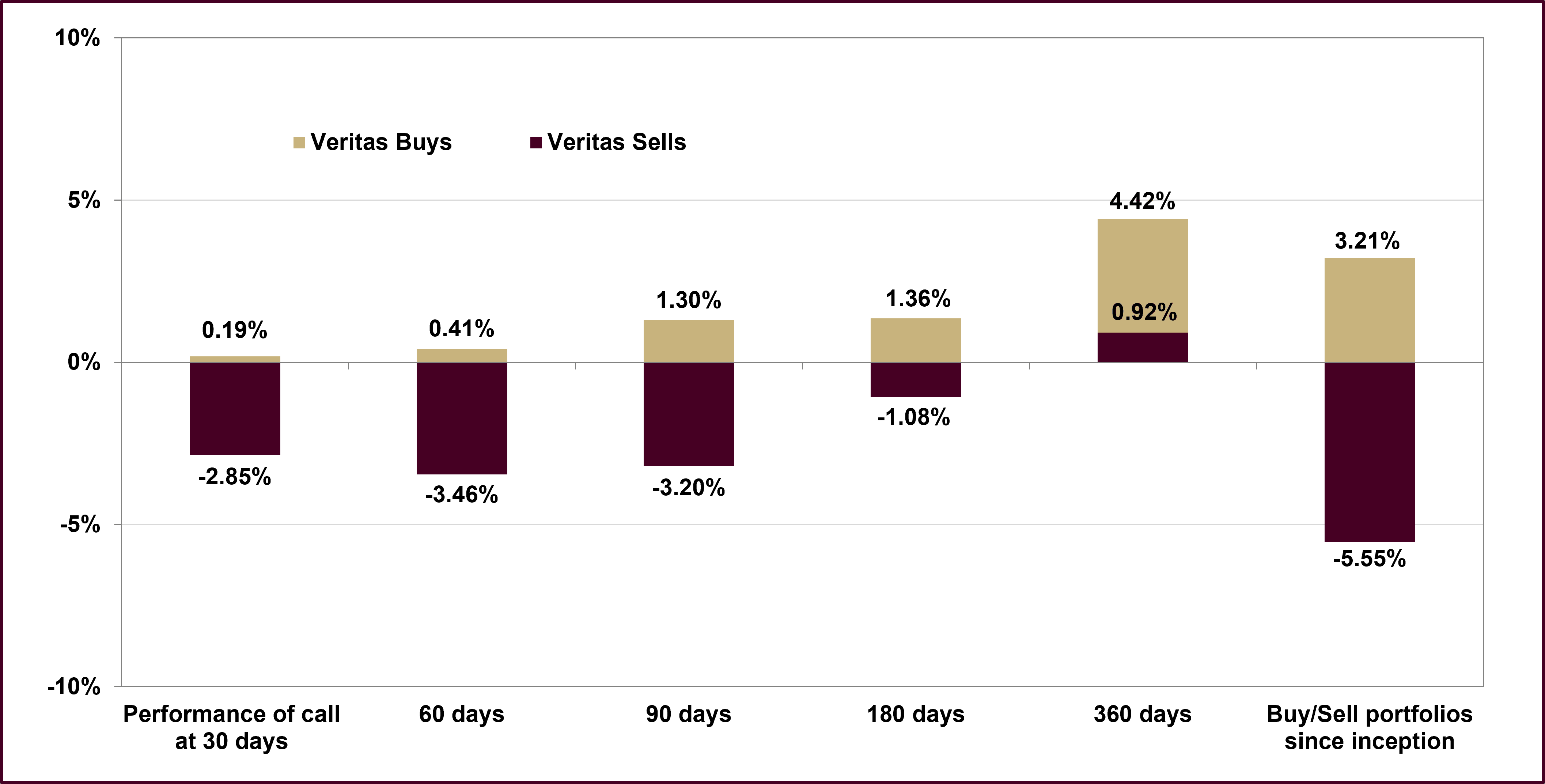 Veritas Buys have outperformed by 321 basis points CAGR since inception