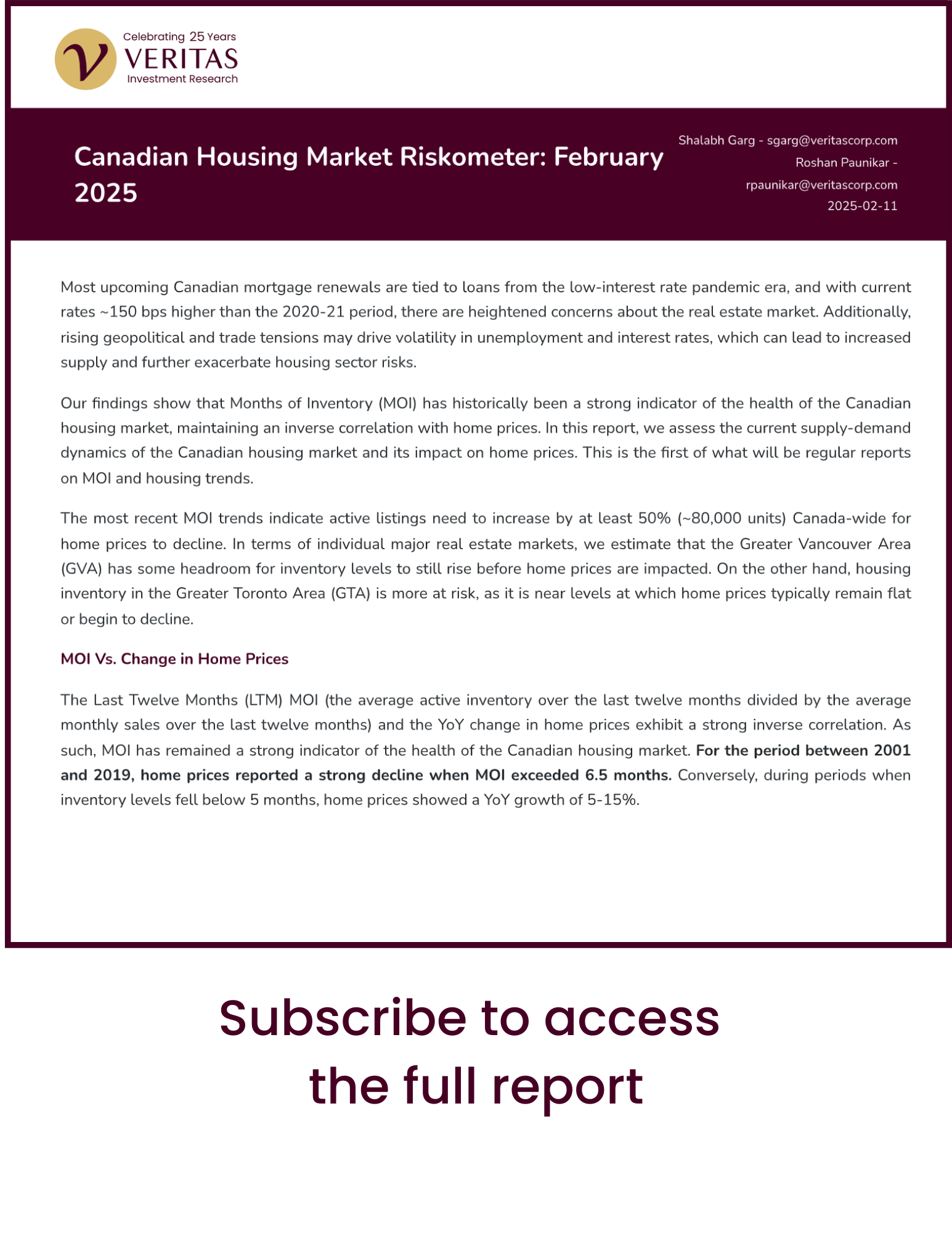 Subscribe to our Veritas Canadian Housing Market Riskometer